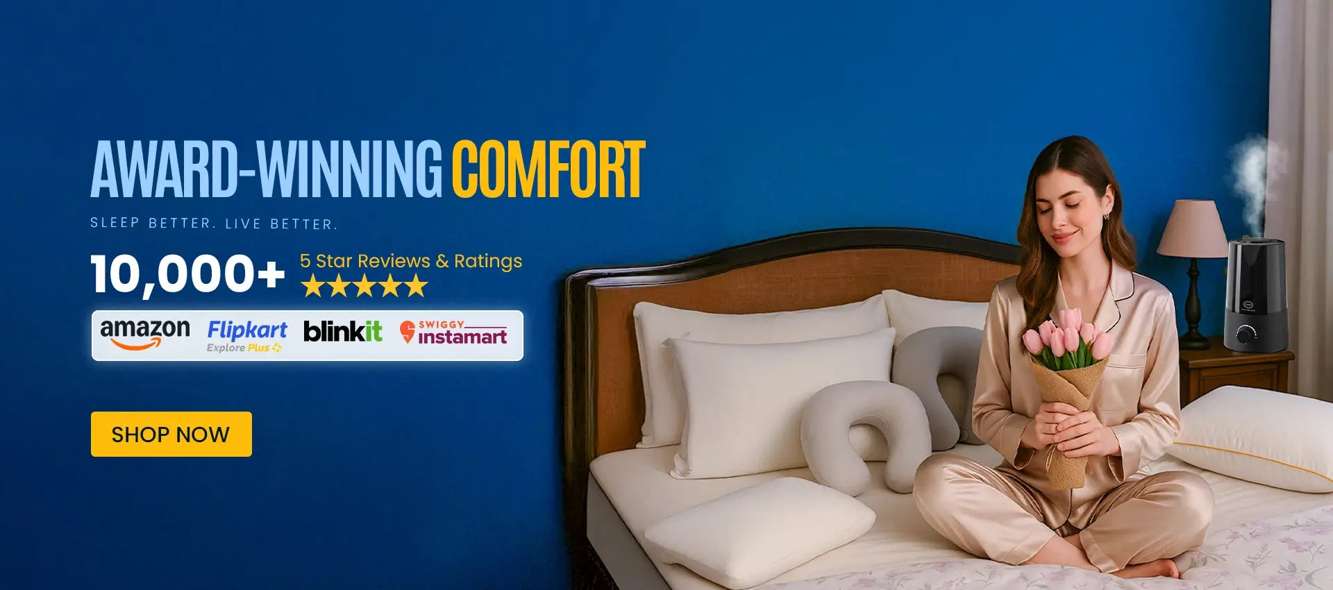 Every Sleepsia pillow is made with high-grade materials, hypoallergenic fabrics, and breathable designs that keep you cool and comfortable. Tested for durability and trusted by thousands of sleepers across India, our products are more than just pillows—they’re long-term companions for your health and well-being.