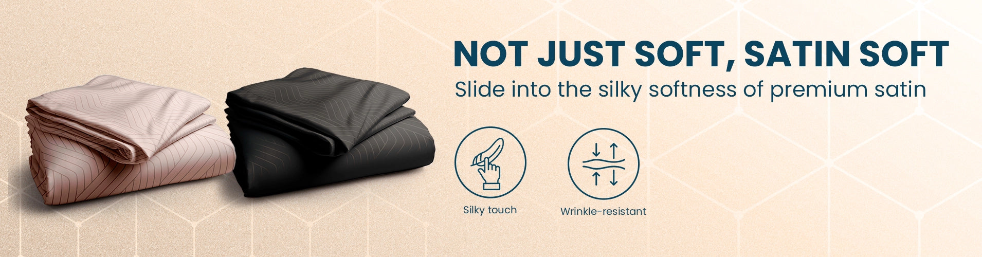 Fabric quality affects both comfort and durability. Polyester (especially ultra polyester with a 300 TC) is a popular choice for being breathable, soft, and long-lasting. Satin, like Sleepsia’s SATIN LUXE collection, adds a smooth, elegant feel ideal for a luxe sleep experience.