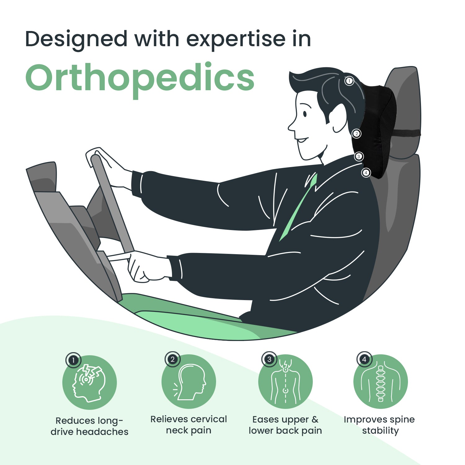 This pillow gently supports your neck and helps keep your back straight, so you stay comfortable and pain-free, even on long drives.