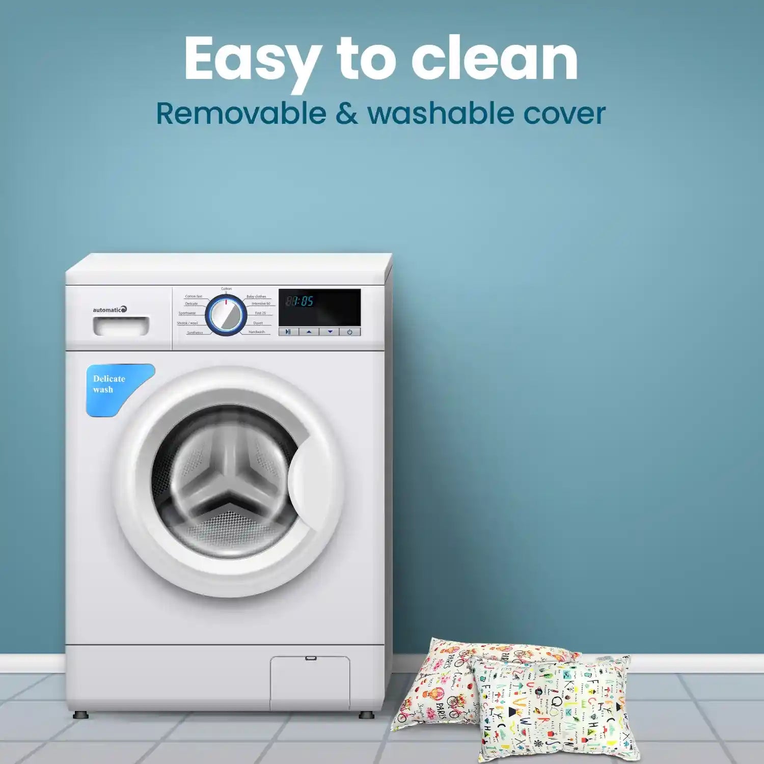Both pillow and cover are fully machine washable and dryer safe, making cleanup quick and easy.
