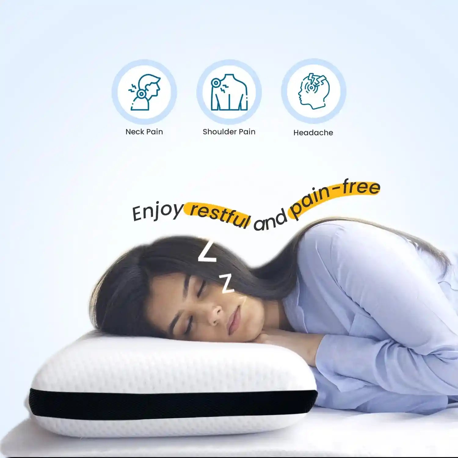 High-density memory foam contours to your head and neck, providing personalized support and evenly distributing weight.